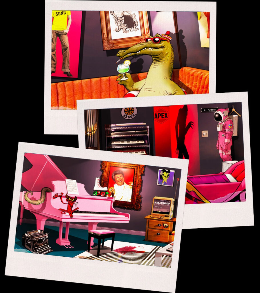 Lá pros idos de 2002 o Gorillaz já fazia site oficial interativo e com vários joguinhos (achei um vídeo do site antigo, aqui). Agora, para o lançamento do disco novo (agora em fevereiro) eles refizeram o Kong Studios do zero, com novas salas, novos mini games e inúmeras coisas para interagir. Vale muito a visita: