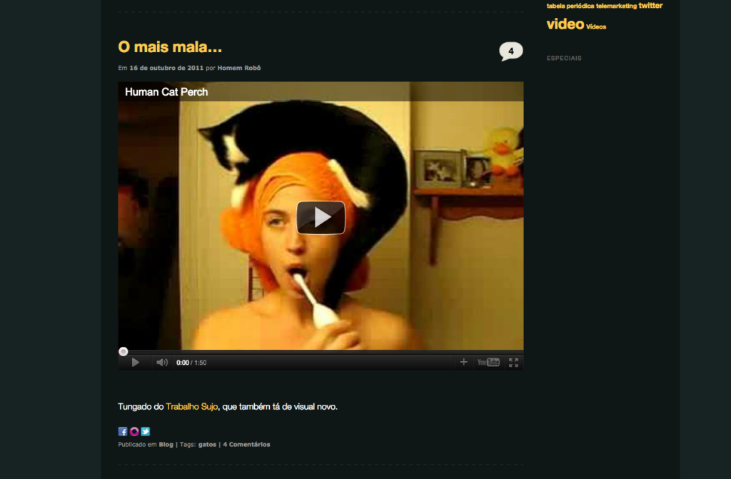 Em 2008 essa moça viralizou com o vídeo da gata mala aí. Em 2011 eu postei aqui, roubando o vídeo do trabalho sujo. E capturei uma tela na época: